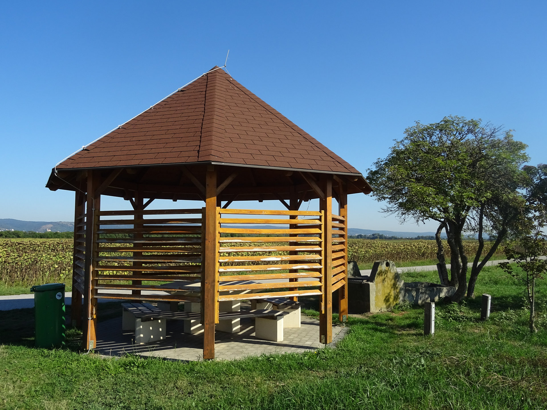 Weinlaubenkuppel: Die Weinlaubenkuppel liegt direkt an einem steilen Stück des Neusiedler See-Radwanderweges und bietet einen herrlichen Ausblick auf Oggau und den Neusiedler See in seiner ganzen Länge. Rechtzeitig zum Oggauer "Lueg ins Land" (Weinfest im Herbst) am 22. September 2000, wurde die vom Künstler Mag. Heinz Bruckschwaiger geschaffene Weinlaubenkuppel eröffnet. Ein gewölbeartiger Gang, mit Weinreben gesäumt, führt zu einen Tisch, mit einer 12-eckigen Sandsteinplatte mit einem Durchmesser von ca. 2 Metern. Der Boden besteht aus Sandsteinplatten aus Sankt Margarethen im Bgld..