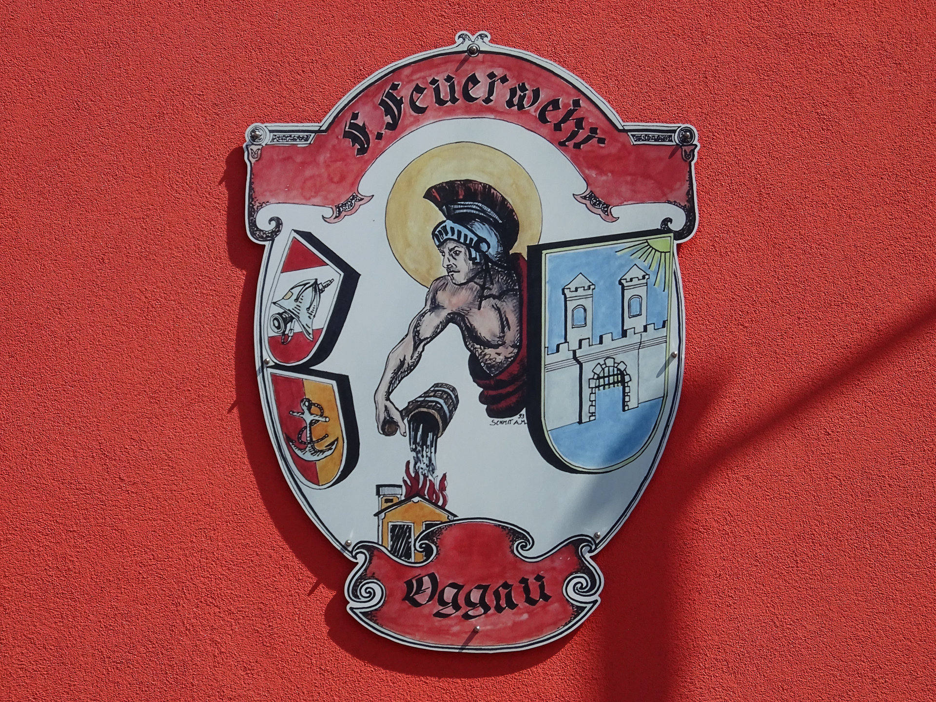 Maria Krönung-Säule (Schmidlkreuz): Die Maria Krönung-Säule, auch Schmidlkreuz genannt, befindet sich ca. 100 m vom Friedhof in Oggau entfernt, an der Straße nach Rust, im Ried Pratschweingarten. Der fast 6 m hohe Bildstock wurde von einem Ödenburger Steinmetzmeister geschaffen. Auf einer korinthischen Säule mit wuchtigem Gesims ist auf Wolken die Krönung Mariens durch die Dreifaltigkeit dargestellt. Paul und Anna Schmidl stifteten diesen Bildstock 1913 anläßlich der Übergabe des landwirtschaftlichen Betriebes der Eltern. Für die Erhaltung sorgt die Familie Ernst, Hauptstraße 37, in Oggau.