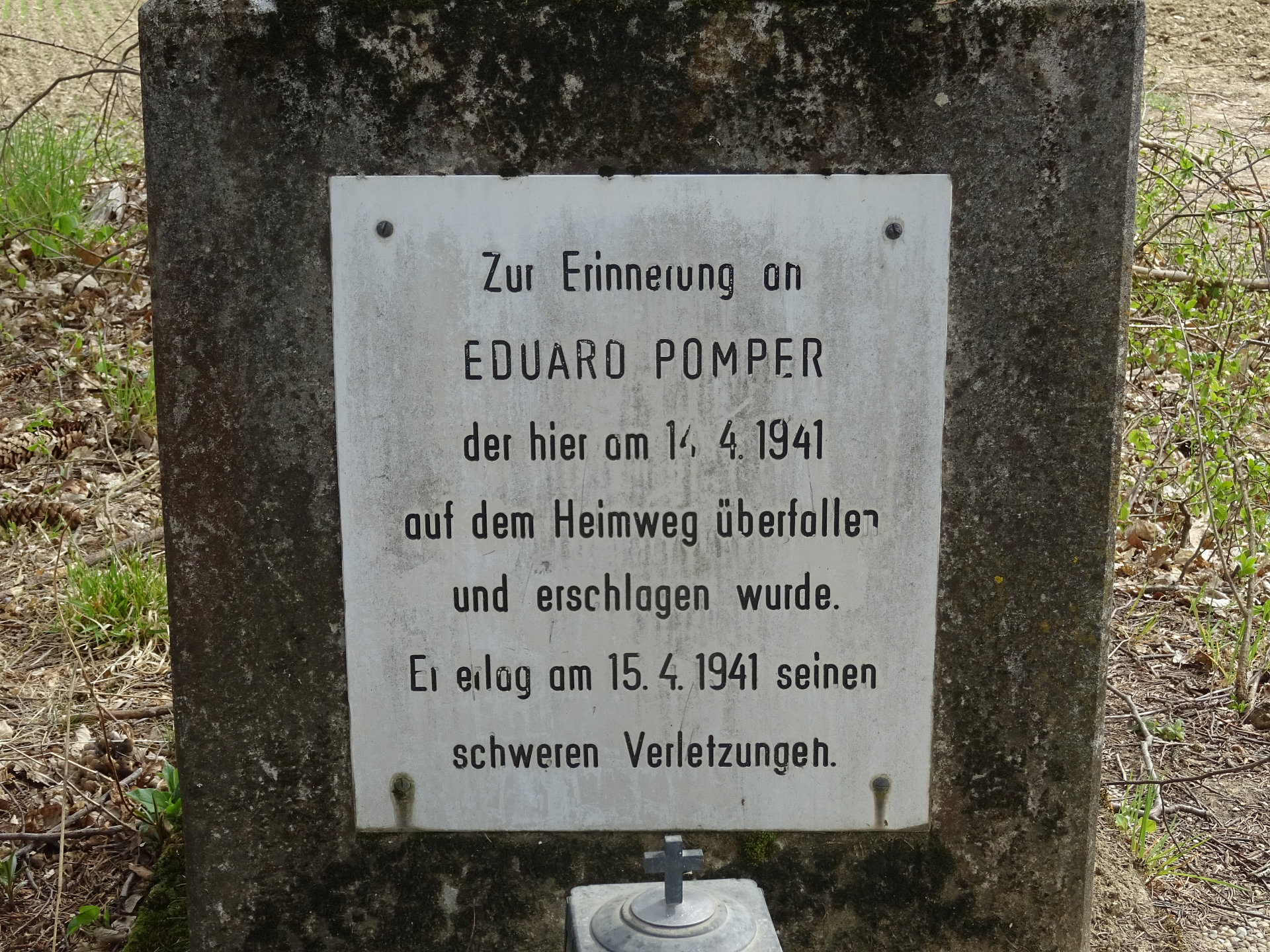 Kreuz von Eduard Pomper: (15.4.1941), etwas außerhalb des Ortsteiles Schoada im Neunmaldorf Olbendorf, an der Grenze zum Bezirk Oberwart. Die Inschrift lautet: "Zur Erinnerung an EDUARD POMPER, der hier am 14,4,1941 auf dem Heimweg überfallen und erschlagen wurde. Er erlag am 15.4.1941 seinen schweren Verletzungen."