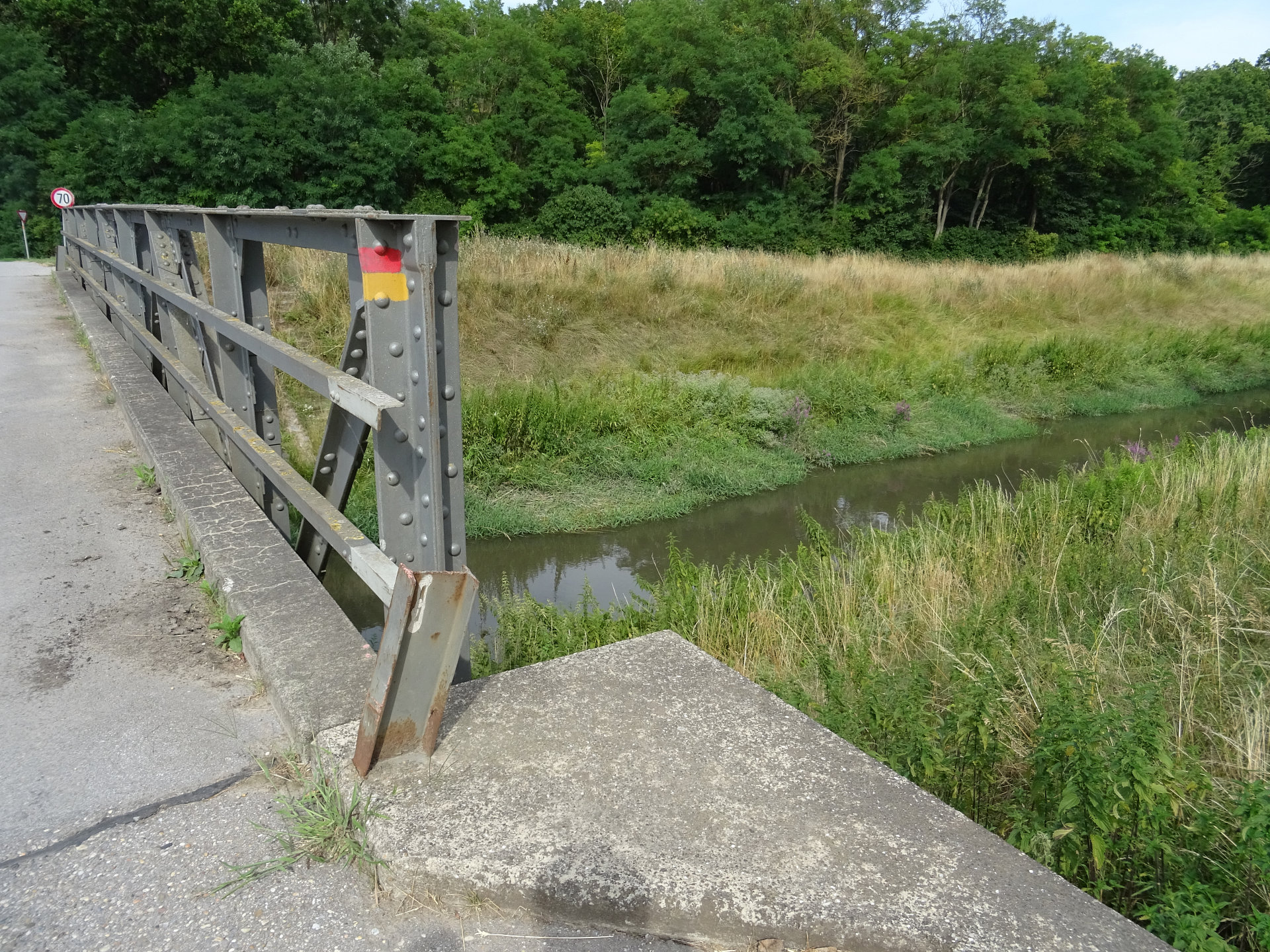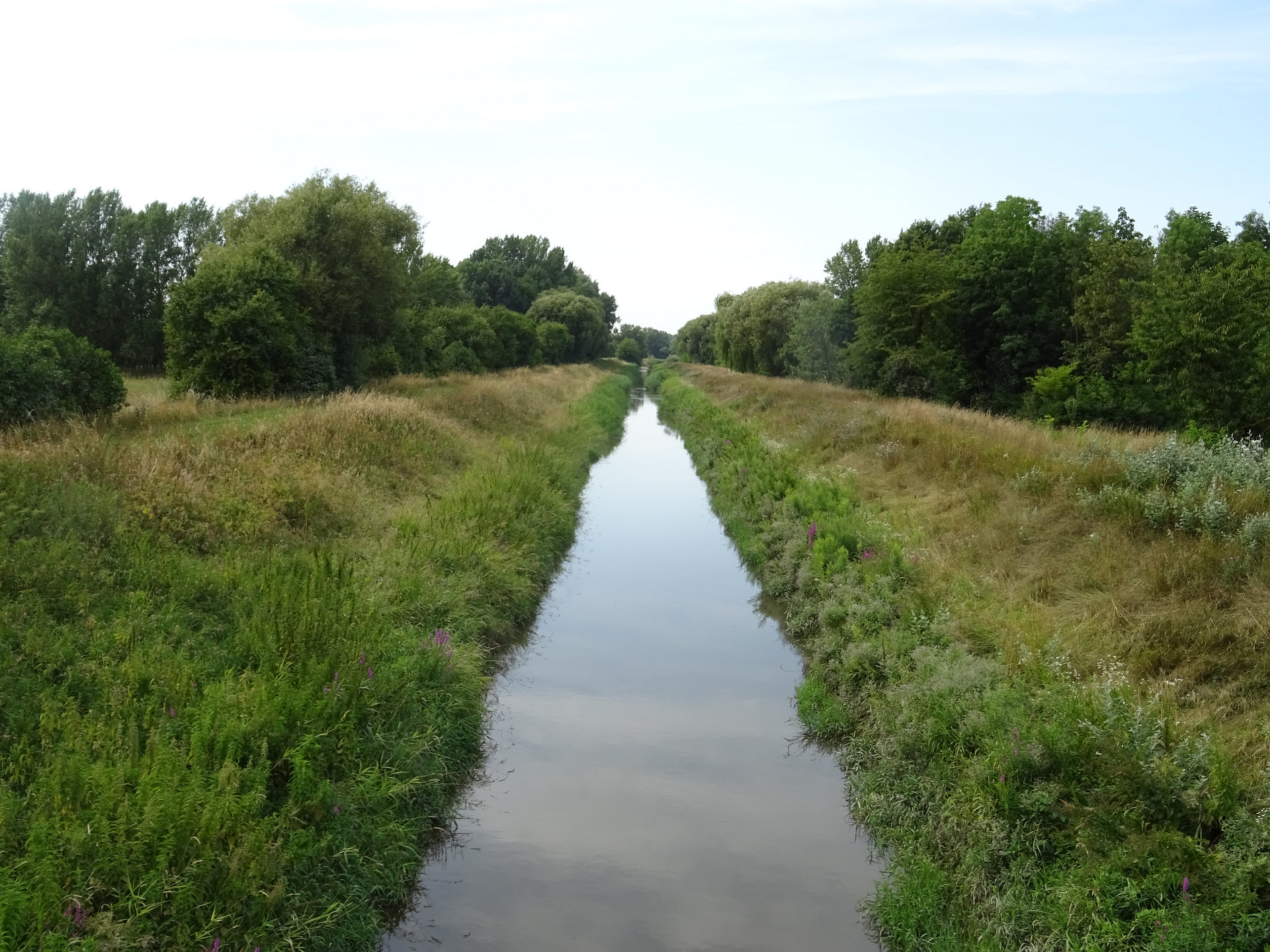 Der fast geradlinige, eingedämmte Komitatskanal wurde bereits während der ersten Bauphase der Leitharegulierung nach dem Ersten Weltkrieg errichtet.